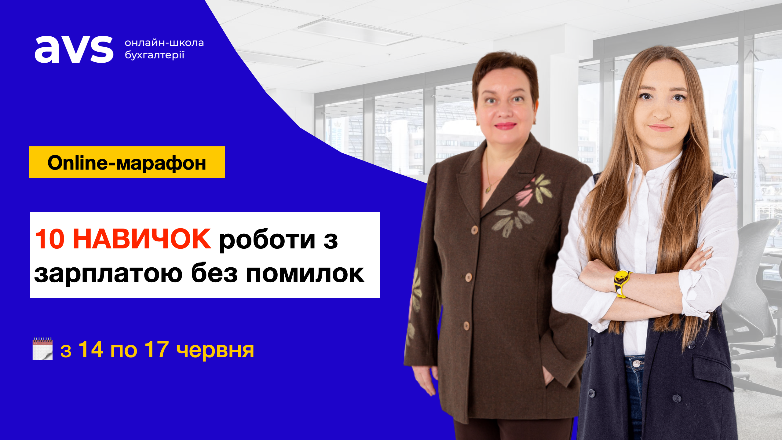 Запрошуємо Вас на онлайн-марафон “10 НАВИЧОК роботи з зарплатою без помилок“, яку проведуть Анастасія Волевач і Ірина Тимошенко (Експерти Онлайн-школи бухгалтерії AVS). Реєструйтесь!