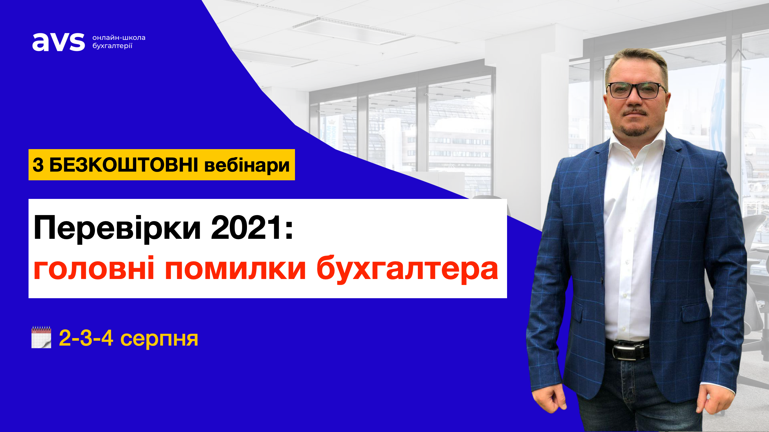 Запрошуємо Вас на серію безкоштовних вебінарів “Перевірки 2021: головні помилки бухгалтера“, яку проведе Ігор Січеславський (Експерт онлайн-школи бухгалтерії AVS). Реєструйтесь!